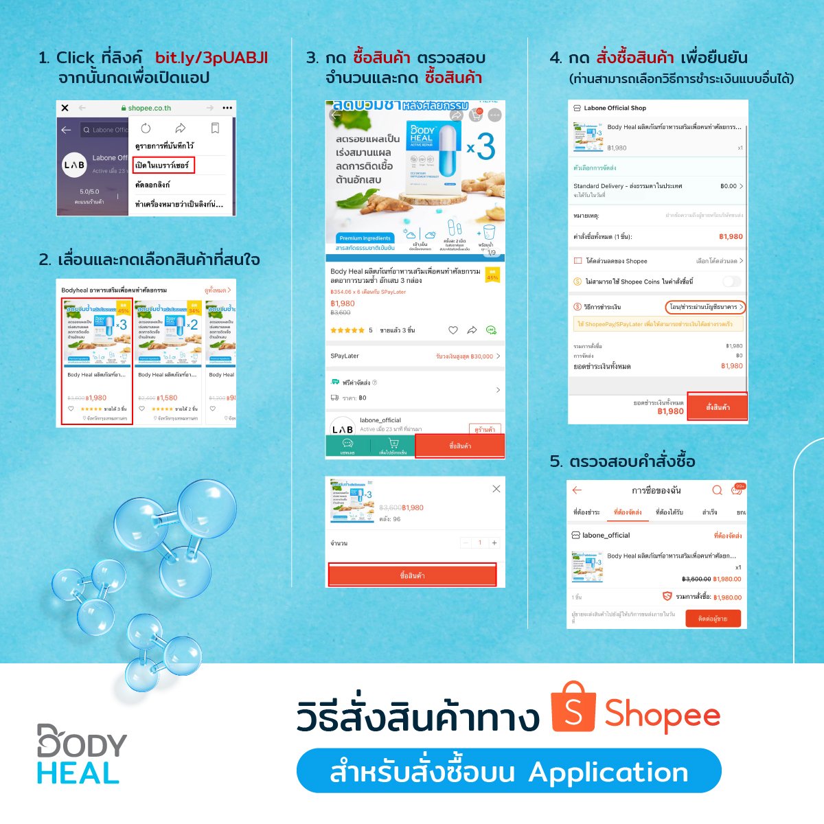ในยุคนี้ การซื้อสินค้าผ่านทางร้านค้า อาจจะมีความเสี่ยงในการติด COVID-19 ในการเดินทาง Body Heal จึงเปิดร้านออนไลน์ในแพลตฟอร์ม Shopee ซึ่งเป็นแพลตฟอร์มซื้อขาย ให้ผู้ซื้อได้รับความสะดวกไม่ว่าจะเป็นการจ่ายเงินปลายทาง บัตรเครดิต หรือการโอนผ่านบัญชีธนาคาร เพียงแค่กดคลิก และรอรับ Body Heal ส่งตรงถึงบ้านได้เลย